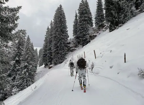 REITERALPE, März 2021: Alpine Befähigungen im Winter und uneingeschränkte Skibeweglichkeit mit Waffe und Gepäck gilt es auch für die Ingolstädter Pioniere des nichtaktiven Pionierbataillon 905 aufrecht zu erhalten, um so die Pionierunterstützung für die Kampftruppe ins Gebirge bringen zu können.