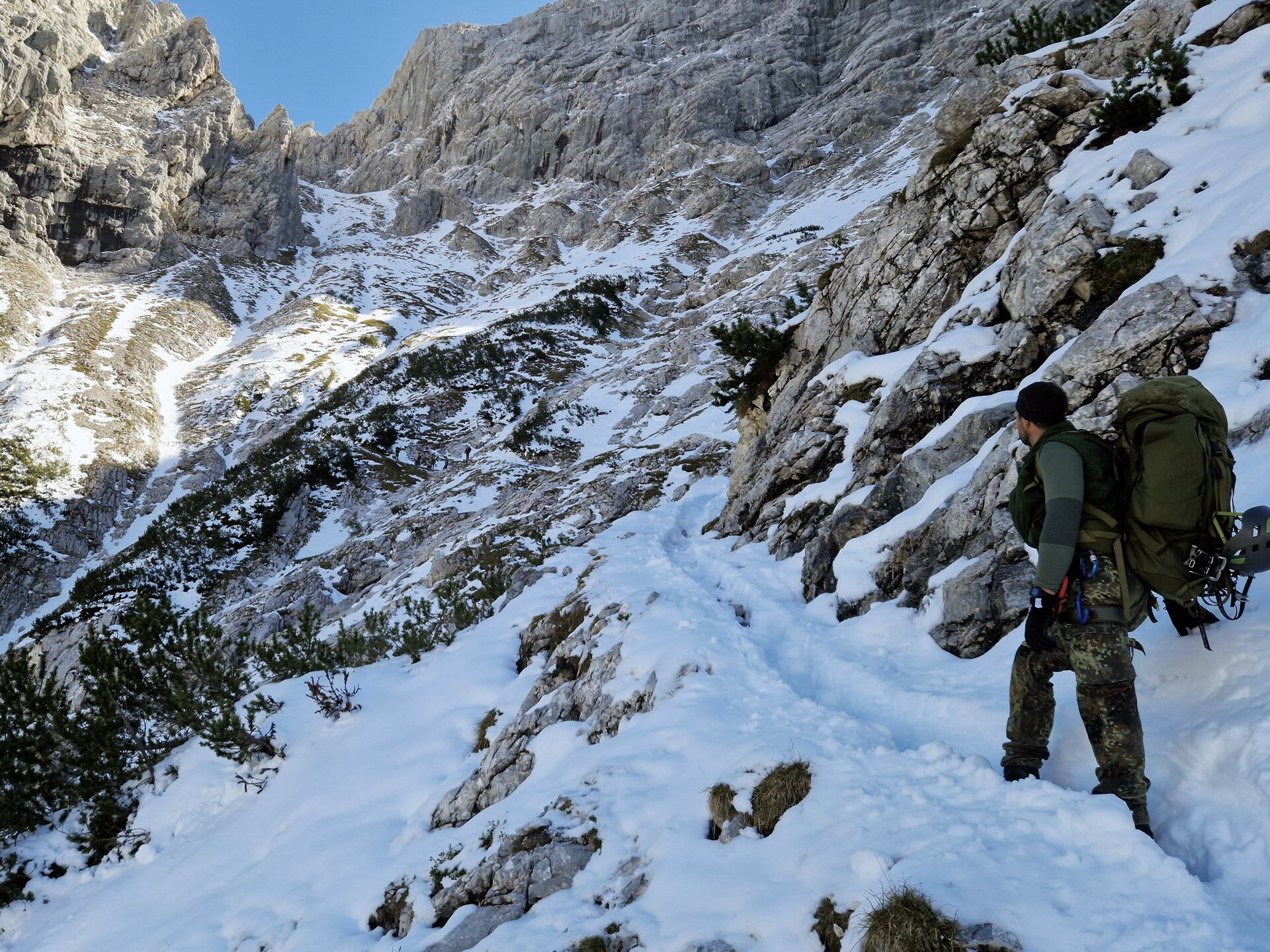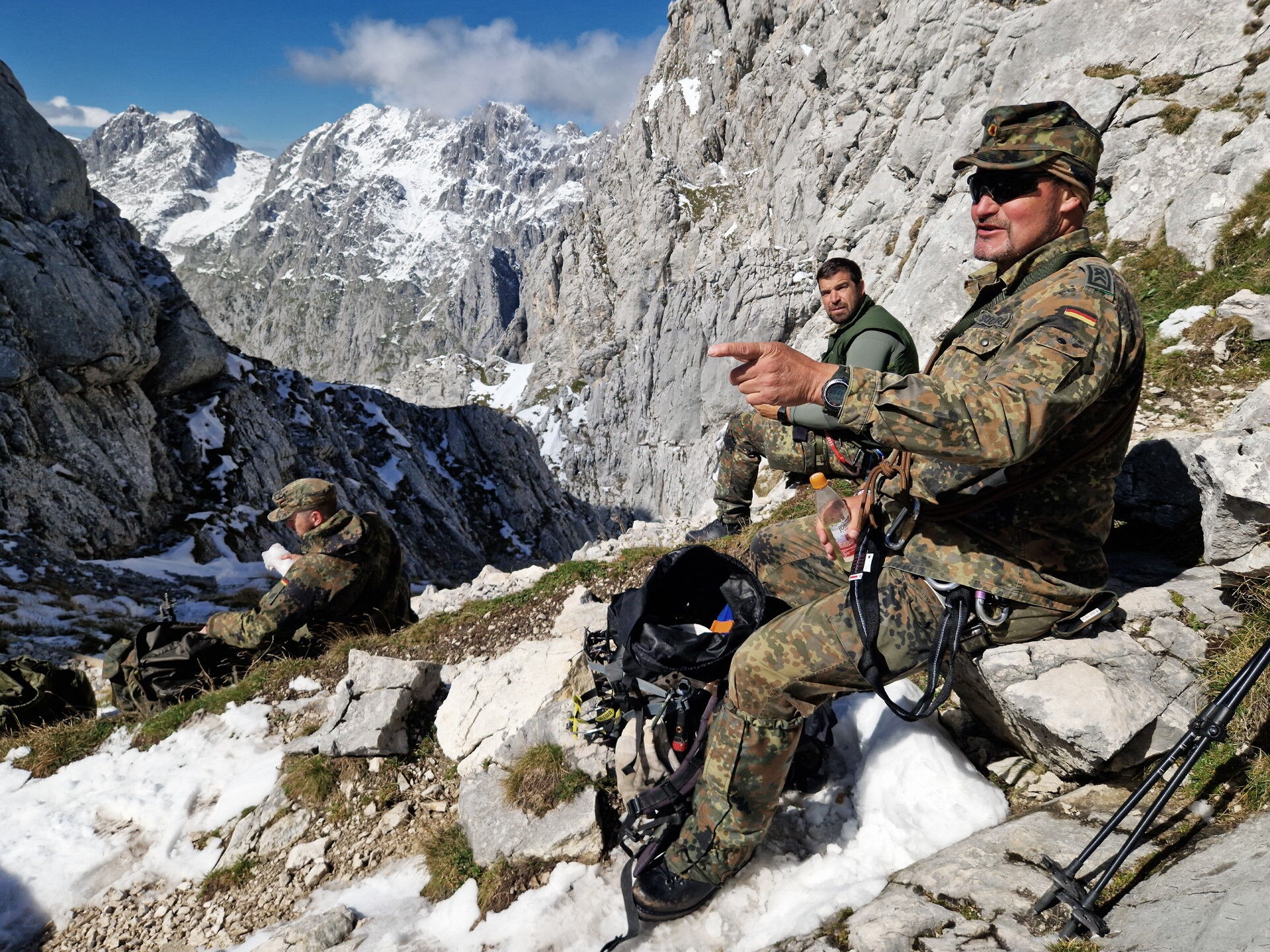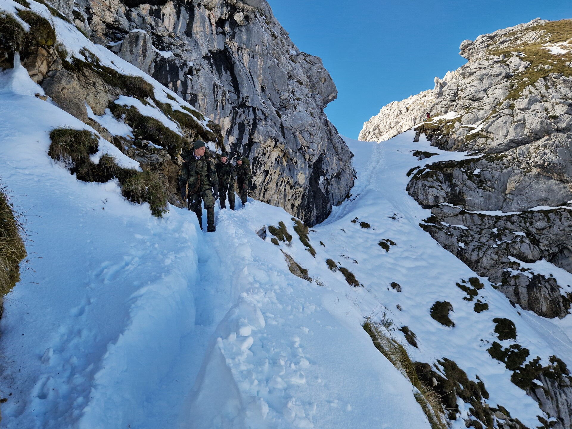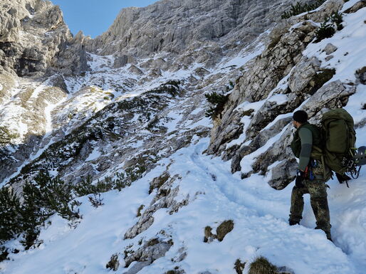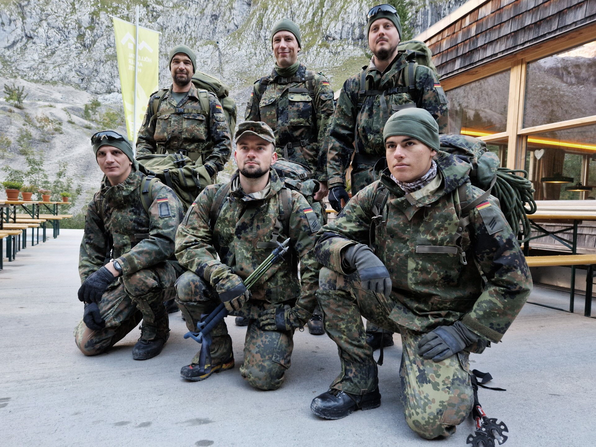Der Aufstieg führt die acht Soldaten der Hochgebirgsgruppe der 2. Kompanie vom Parkplatz Hammersbach durch das Höllental hinauf zur Höllentalangerhütte auf 1.387 m. Dabei überwinden sie unter der Führung des Heeresbergführers Stabsfeldwebel Peter Schöddert mit knapp 30 kg Gepäck auf fünf Kilometern 765 Höhenmeter.