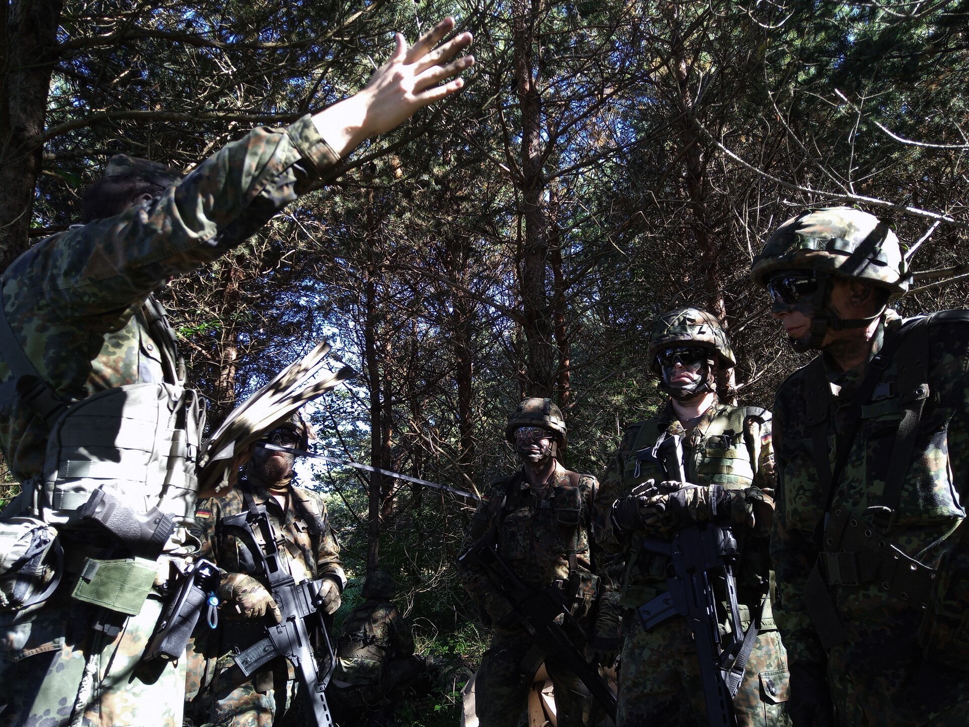 - Verhalten in und an den Gefechtsfahrzeugen sowie Aufgaben der Besatzung bei Marsch: Hier wurden die Soldaten an dem Transportpanzer Fuchs, einem 10 Tonner gl sowie am Lkw gl leicht Wolf ausgebildet. Themenkomplexe waren dabei insbesondere die Sicherheitsbestimmungen, Auf- und Absitzen, Sicherung während des Marsches oder auch Einweisung in die Handhabung des Fahrzeugens (z.B. Halterungen für Waffen, Munition und Gerät). Die praktische Umsetzung erfolgte mit dem Transportpanzer Fuchs, wo im Rahmen von Verlegefahrten das vorher gelernte geübt und umgesetzt wurde.